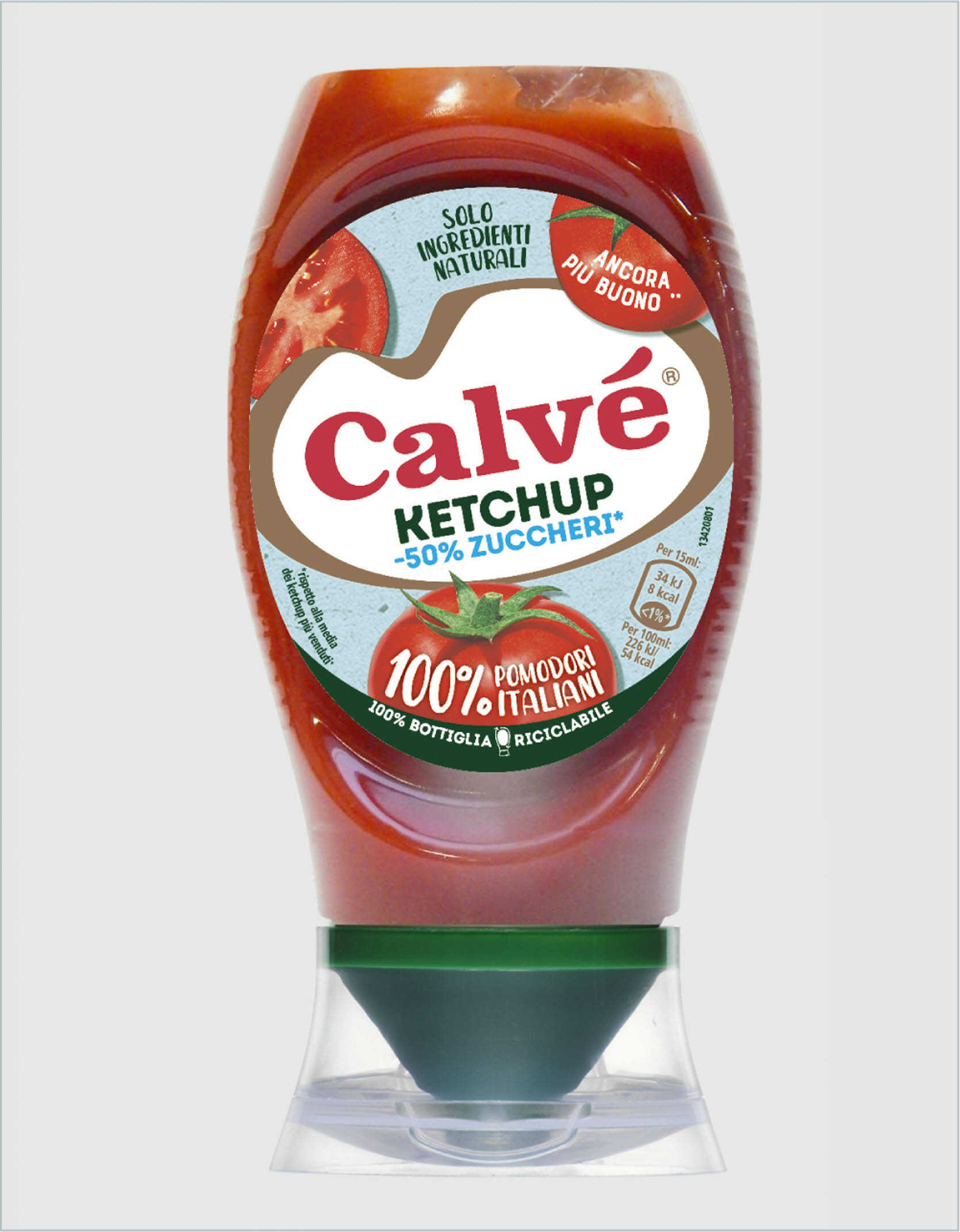 Calvè propone 3 varianti, prodotte nello stabilimento di Rivarolo del Re, in provincia di Cremona: standard, piccante e con -50% di zuccheri. Tutte realizzate con pomodori 100% italiani e in confezione top down. La variante -50% di zuccheri (nella ricetta pomodori (168 g per 100g di ketchup), acqua, aceto d’alcole, zucchero, sale, estratto di lievito, succo di limone concentrato, spezie, edulcoranti: glicosidi steviolici da Stevia) ha il classico aspetto di “una passata densa e lucida, dall’odore speziato e un gusto agrodolce, caratteristici aromi della salsa di pomodoro.”