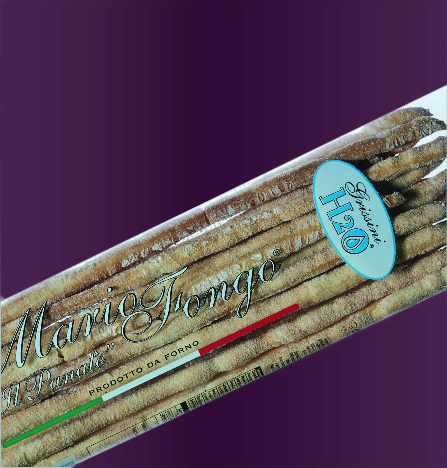I grissini H2O completano la ricca gamma di grissini stirati Mario Fongo. L’utilizzo dell’acqua al posto di materie grasse conferisce al prodotto una particolare leggerezza e friabilità . Si presentano perfetti nel profumo e negli aromi delicati, diretti e tipici di crosta di pane.